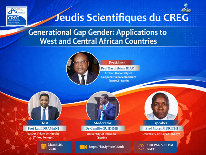 Professor Latif DRAMANI, President of the Regional Consortium for Generational Economics (CREG), will participate in a technical workshop in Kenya: […]