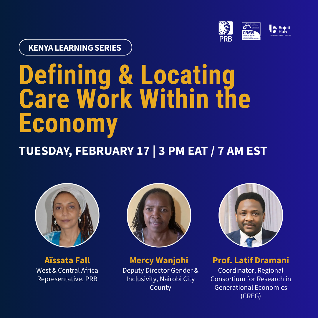 Organised by the Regional Consortium for Research in Generational Economics (CREG) , in partnership with the Population Reference Bureau (PRB) , this series of six webinars is dedicated to: “CARE and Demographic Dividend-Sensitive Budgeting (DDSB)”